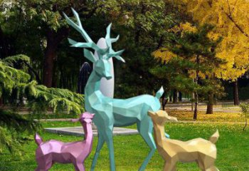 幾何彩繪梅花鹿雕塑,玻璃鋼裝點公園草坪