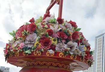 藝術性玻璃鋼彩繪大型花籃雕塑