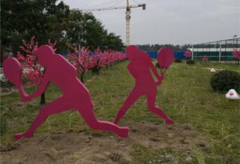 不銹鋼剪影打羽毛球雕塑