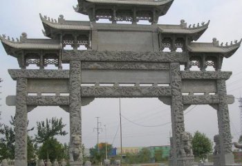 傳統(tǒng)中式園林村莊入口石雕牌坊