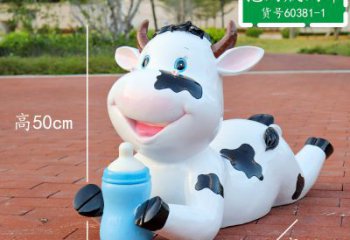 玻璃鋼雕塑玻璃牛抱著奶瓶公園裝飾