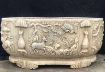 經(jīng)典雅致的庭院景觀精致理石浮雕水缸雕塑