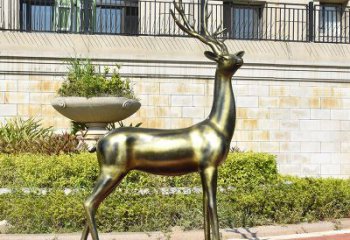 不銹鋼仿銅鏡面鹿雕塑