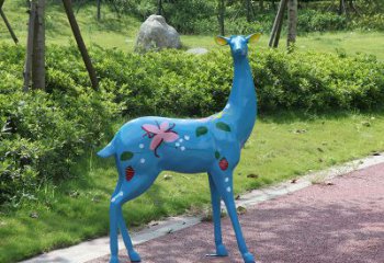 公園彩繪玻璃鋼雕塑——藍(lán)色鹿
