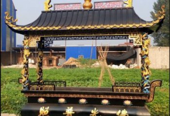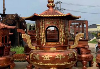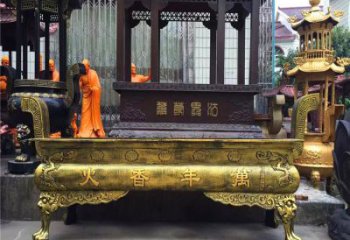 大型純銅鎏金香爐雕塑,為景觀寺廟增添靈性美感