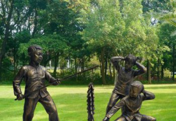 樂(lè)在其中,城市兒童放鞭炮銅雕