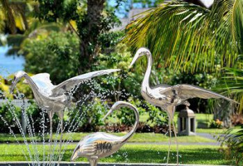 大型不銹鋼抽象仙鶴景觀雕塑