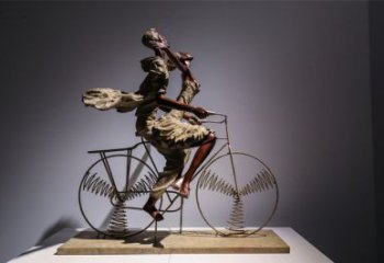 不銹鋼創(chuàng)意人物騎自行車雕塑