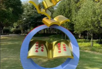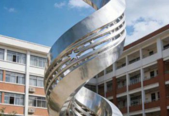 雕塑以不銹鋼鍛造的流暢環(huán)形為主體,環(huán)身綴滿振翅欲飛的白鴿,基座鐫刻 “飛翔” 二字。鏡面不銹鋼材質(zhì)折射天光與建筑,靈動的白鴿與剛勁的環(huán)形形成對比,既彰顯校園活力,也傳遞自由、和平與向上的精神內(nèi)核,是兼具視覺美感與育人意義的公共藝術(shù)作品。