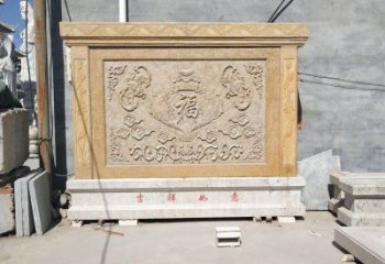 金色廣場福字雕塑修建照壁,突出皇權(quán)至上,以九龍圖案鐫嵌其上。寺院門前,為金色廣場福字雕塑宏闊,也常修照壁,正書佛號,背刻福字。